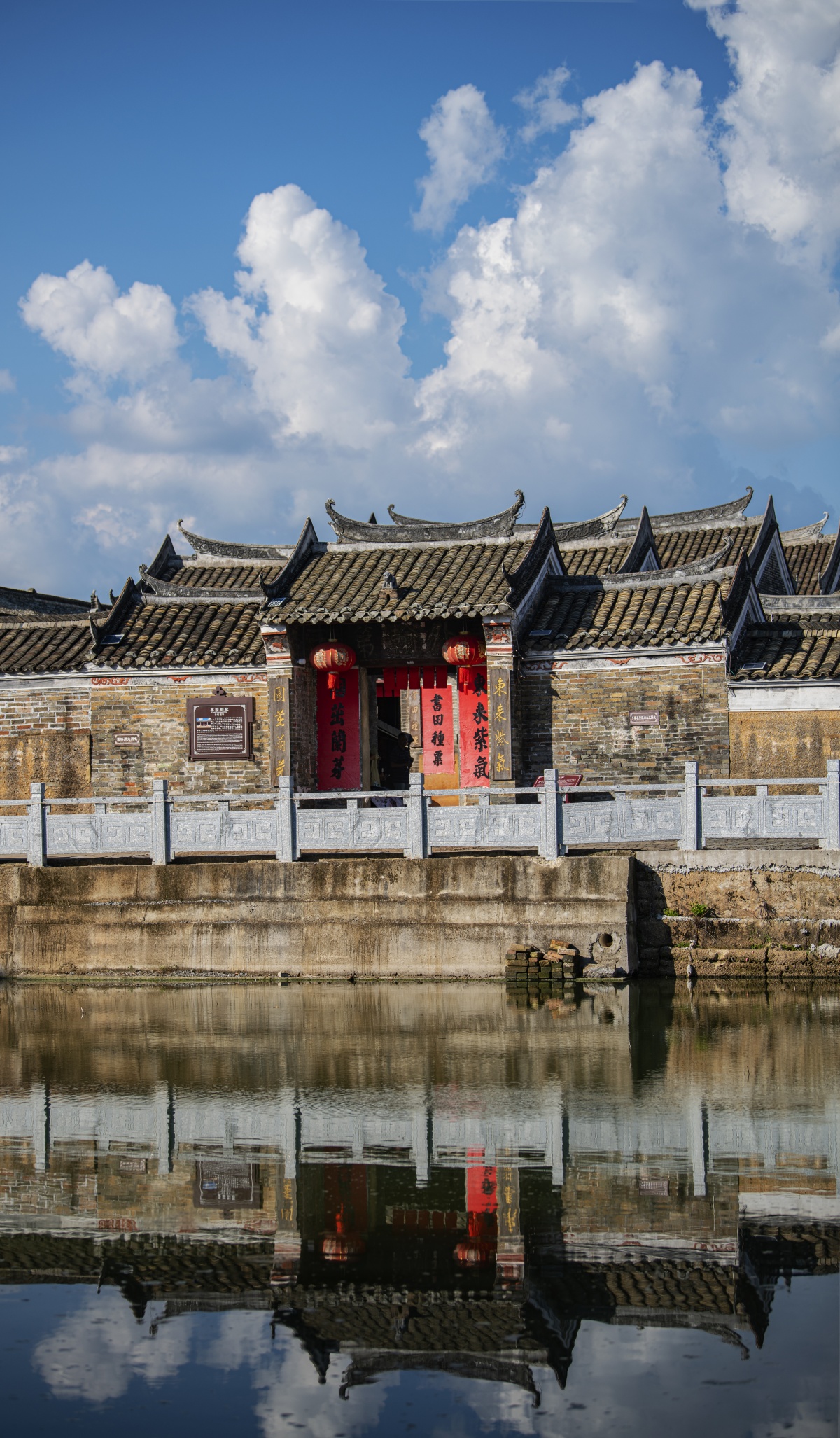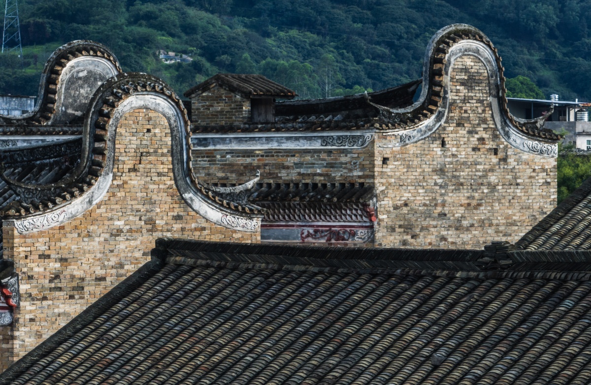 古宅依山傍水而建,形成“背靠青山面朝绿水”的建筑布局。这些宅院多为砖木结构,墙体外部或下部为砖窑烧过的火砖,坚固承重,墙体里面或上部为泥砖,透气防潮,耐风雨侵蚀。精妙的砖木结构赋予宅院冬暖夏凉、回南天不潮的舒适特性,兼具实用与美观之妙。