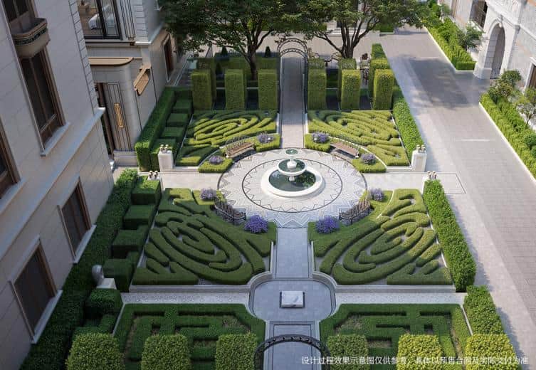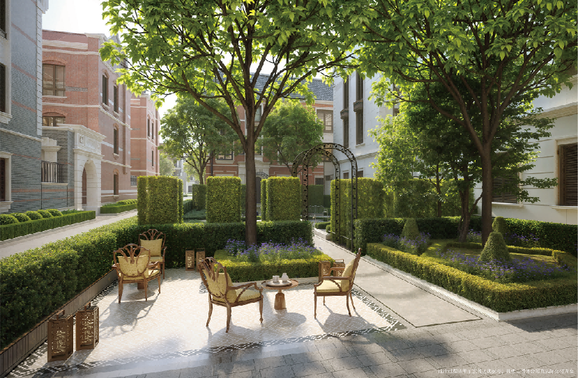 德康里并非简略复刻前史里弄的肌理,而是创始性地引进了同源的法国古典主义园林的轴线、对称与空间序列。这种规制最为会集的表现,是地块内尖端规划的 “法国尚美花园” 。它将谨慎而浪漫的次序头绪进行今世转译,构成中轴对称、充溢典礼感的景象布局。